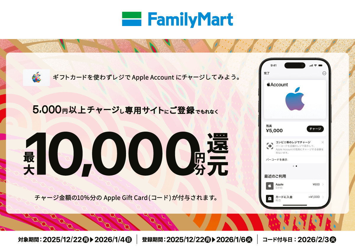 このキャンペーンは、AppleギフトカードのPOSAカードの購入が対象となり、レジでのApple Accountチャージは対象外となるため注意しましょう。